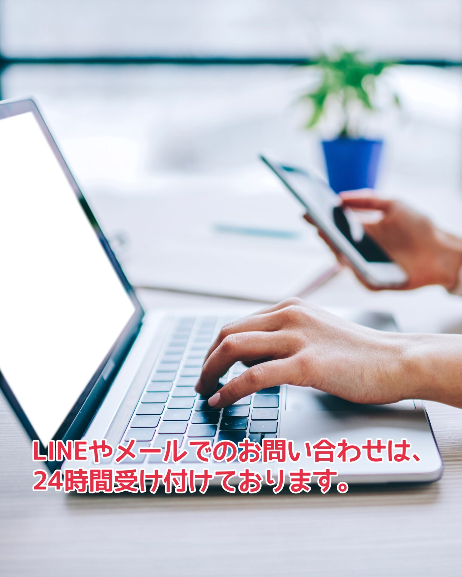 なお、SNS【LINEやメール、インスタやFacebookのダイレクトメッセージ】等でのお問い合わせは、年末年始も変わらず24時間 無料診断受付中です。